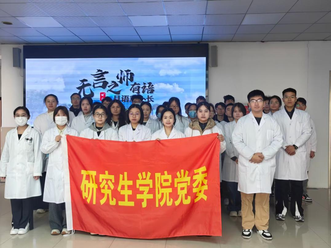 11月19日上午,学院结合研究生专业特点,组织新生前往遗体捐献接受站开展专题教育活动。通过现场参观和讲解学习,同学们进一步体悟医学解剖的科学之美,深切感受遗体捐献志愿者无私大爱与崇高奉献精神,向“无言良师”致以最崇高的敬意。此次学习不仅深深触动了每一位师生的心灵,更让大家对医学生肩负的责任与使命有了更深刻的理解。这既是一堂直抵内心的生命教育课,也是一场深刻的思想洗礼和生动的入党启蒙教育课堂。