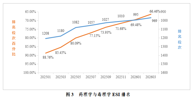 药理学与毒理学:据2026年3月数据统计,我校药理学与毒理学进入ESI前1%。全球共1458家进入全球前1%,我校位于全球第969名,排名较去年同期提升211位;位次百分比为66.46%,较去年同期提升18.99%。